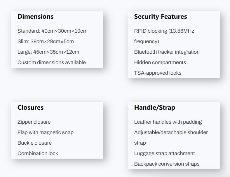Sunteam specializes in manufacturing high-end leather briefcases for bag distributors, retailers, and enterprises, offering bespoke styles, durable materials, and innovative security features.