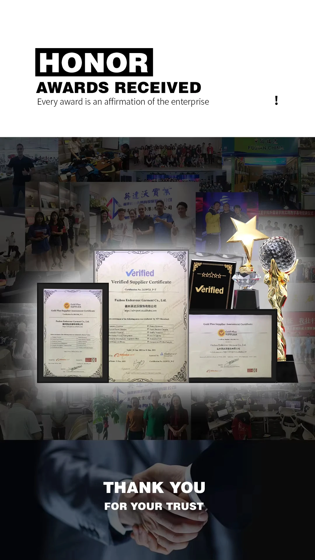 A: We are a professional manufacturing factory of sports wear, we are able to supply you with top quality and prefect workmanship OEM or ODM products.