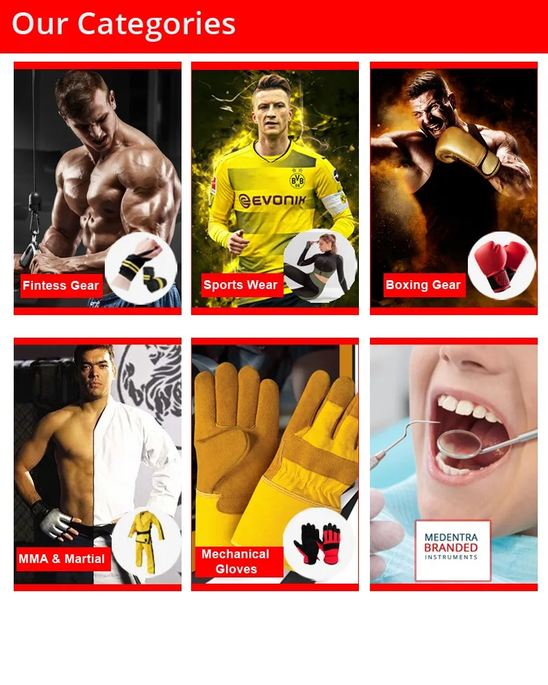 Fitness Gear,Sports Wear,Boxing Gear,Falconry Gear,Dental and Surgical Instruments
