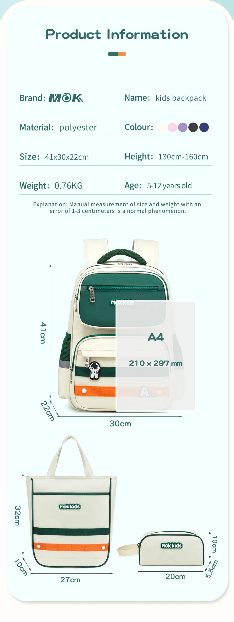 *Product name | 3 in 1 Kids Backpack Set | |